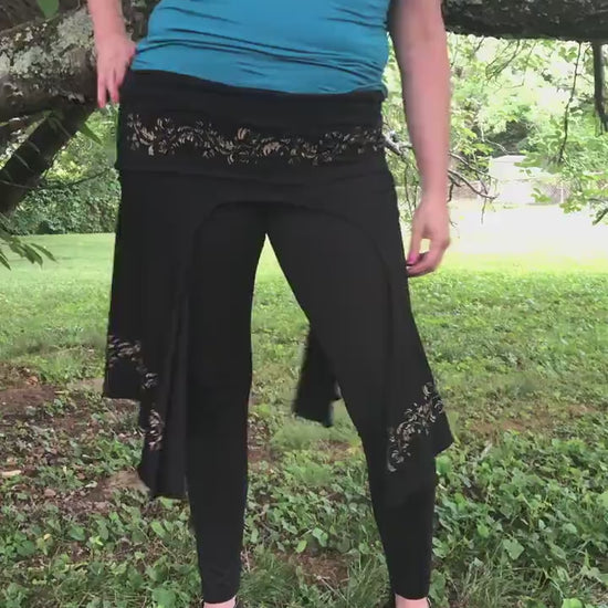The Alexa skirt is a unique hand-printed layering piece over pants, leggings, skirts or even shorts. It can also be worn as a bandeau top. Twist it around your waist or bust to get a different look; see photo no. 4.