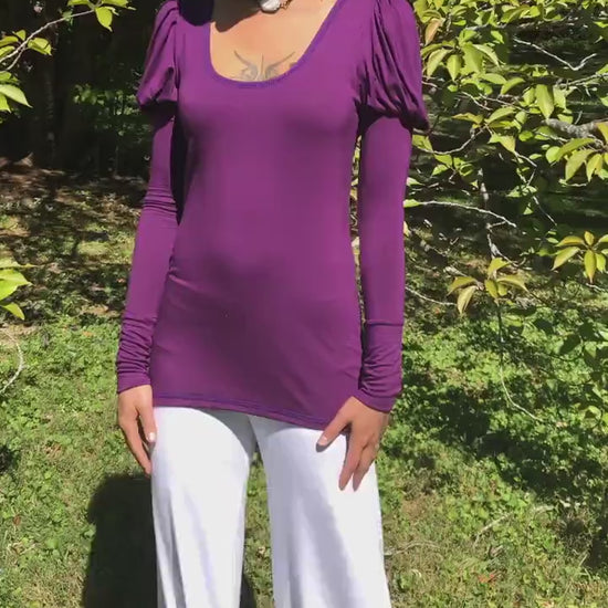 Bridgerton Regency Top, Jane Austen Style, Long Puffed Sleeves, Open Neckline, Relaxed or Close Fit, Soft Stretch Modal, Elven, Other Colors