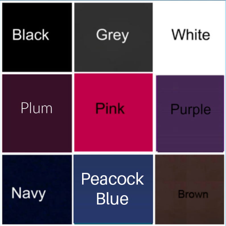Please choose your color from the color swatches. They are not necessarily the same as the colors of the garments in the photos. Fabrics become discontinued, so I only have the colors available in the drop-down options in the listing. White is slightly see-through.