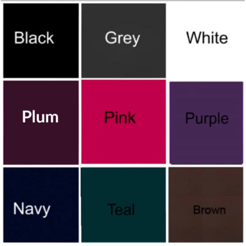 Please choose your color from the color swatch last photo. They are not necessarily the same as the colors of the garments in the photos. Fabrics become discontinued, so I only have the colors available in the drop-down options in the listing. White is slightly see-through.