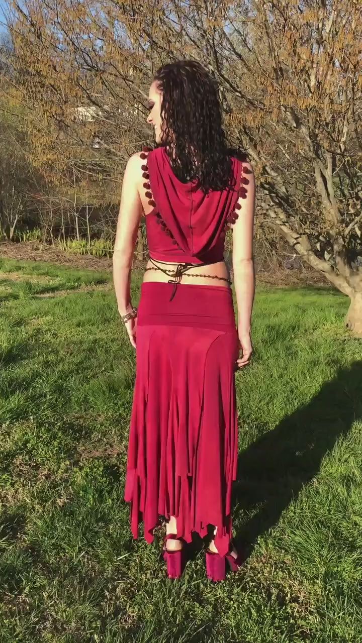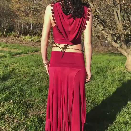 Hand-Dyed Isadora Multi Paneled Fairy, Boho Skirt, SMALL Only, Stretch Modal In Raspberry, Dancewear, Performance, Ceremonial, Priestess