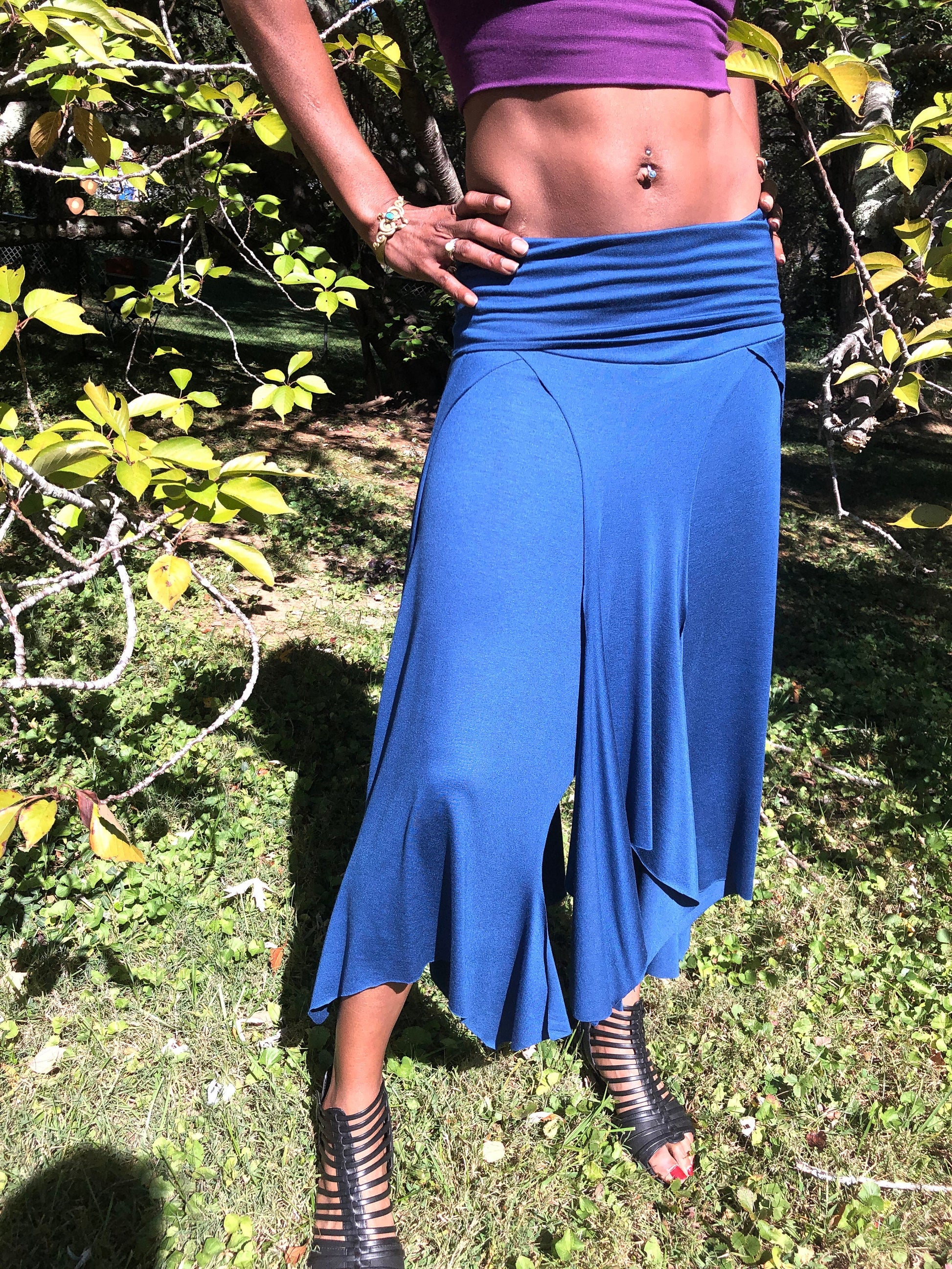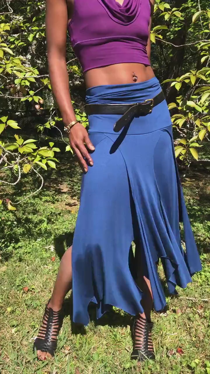 Isadora High Waist, Multi Paneled Fairy, Boho Skirt, Soft Stretch Blue Modal, Dancewear, Performance, Tattered Pagan Ceremonial, Priestess
