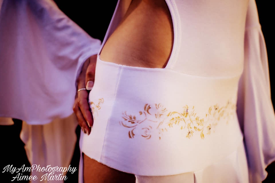 Priestess dress, medieval, ceremonial, perfomance, dancewear, soft stretch modal, hand-printed and diamante hip/waistband, also in black