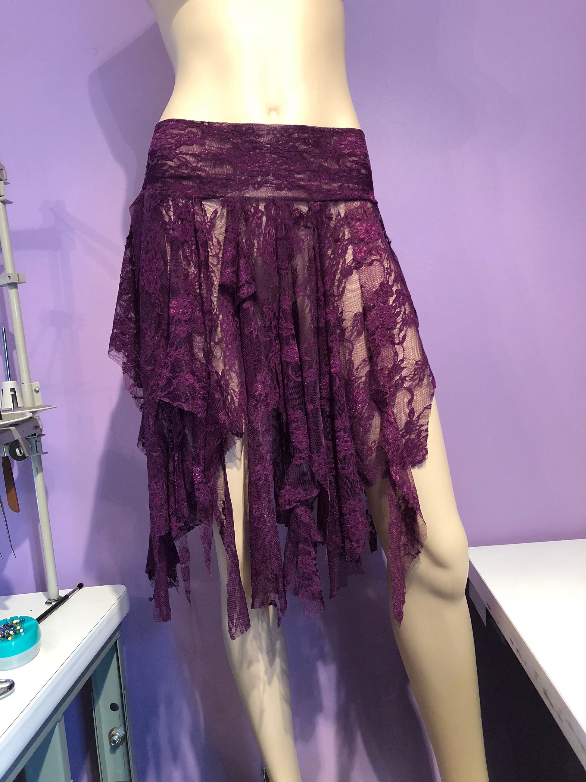 Ragamuffin Tattered Fairy Skirt Top in Stretch Lace, Lingerie Bridal, Boudoir, Fairy Couture, Angel, Dance Costume, Pink Black White Purple