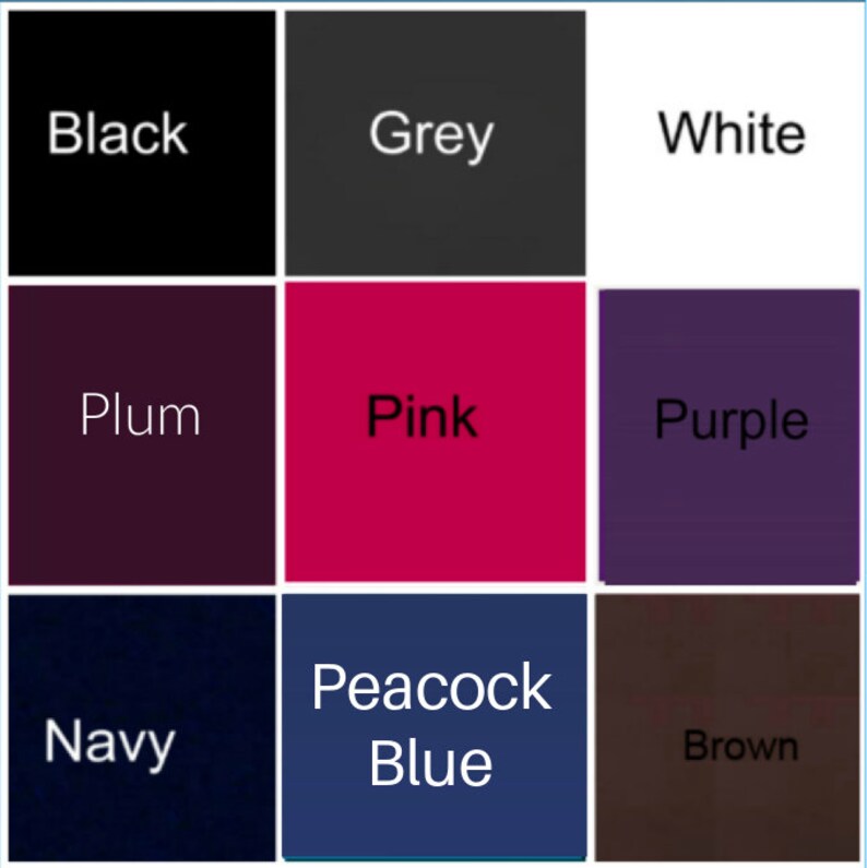 Please choose your color from the color swatch last photo. They are not necessarily the same as the colors of the garments in the photos. Fabrics become discontinued, so I only have the colors available in the drop-down options in the listing. White is slightly see-through.