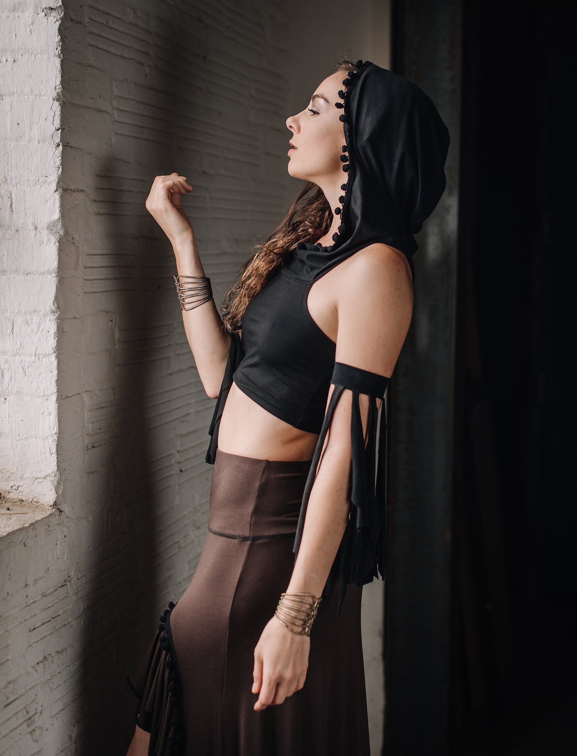 Purchase the matching hooded Emma Crop Top with pompom trim. See Tops section.