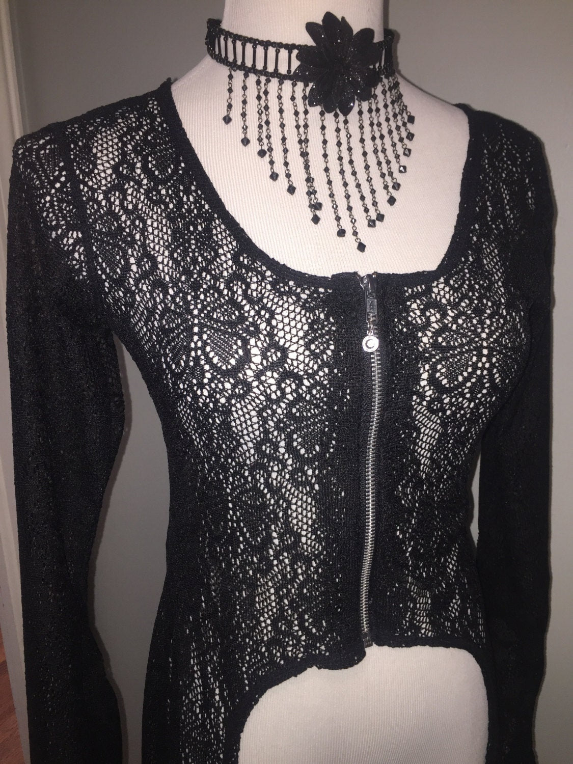 SALE Huntress Duster Jacket, Black Lace, Small ONLY Priestess Robe, High Low Sweater, Scoop Neck Sweater, Lace Cardigan, Maxi Length