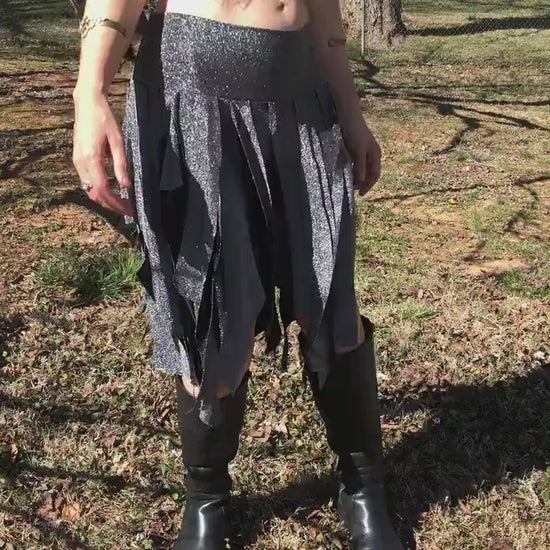 Silver Sparkle Ragamuffin Fairy Skirt, Stretch Lurex Danceskirt, Burning Man, Festival, Tribal Costume, Elven, Cabaret Bellydance, Boho
