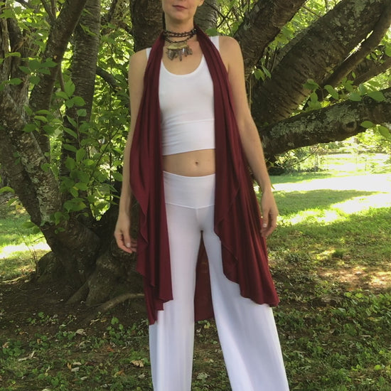 Tantra Halter Cardigan Festival Top/Skirt, Soft, Fluid, Lightweight, Draping, Burgundy Tencel Fine Knit, Beach Cover-Up, Dancewear, Cape