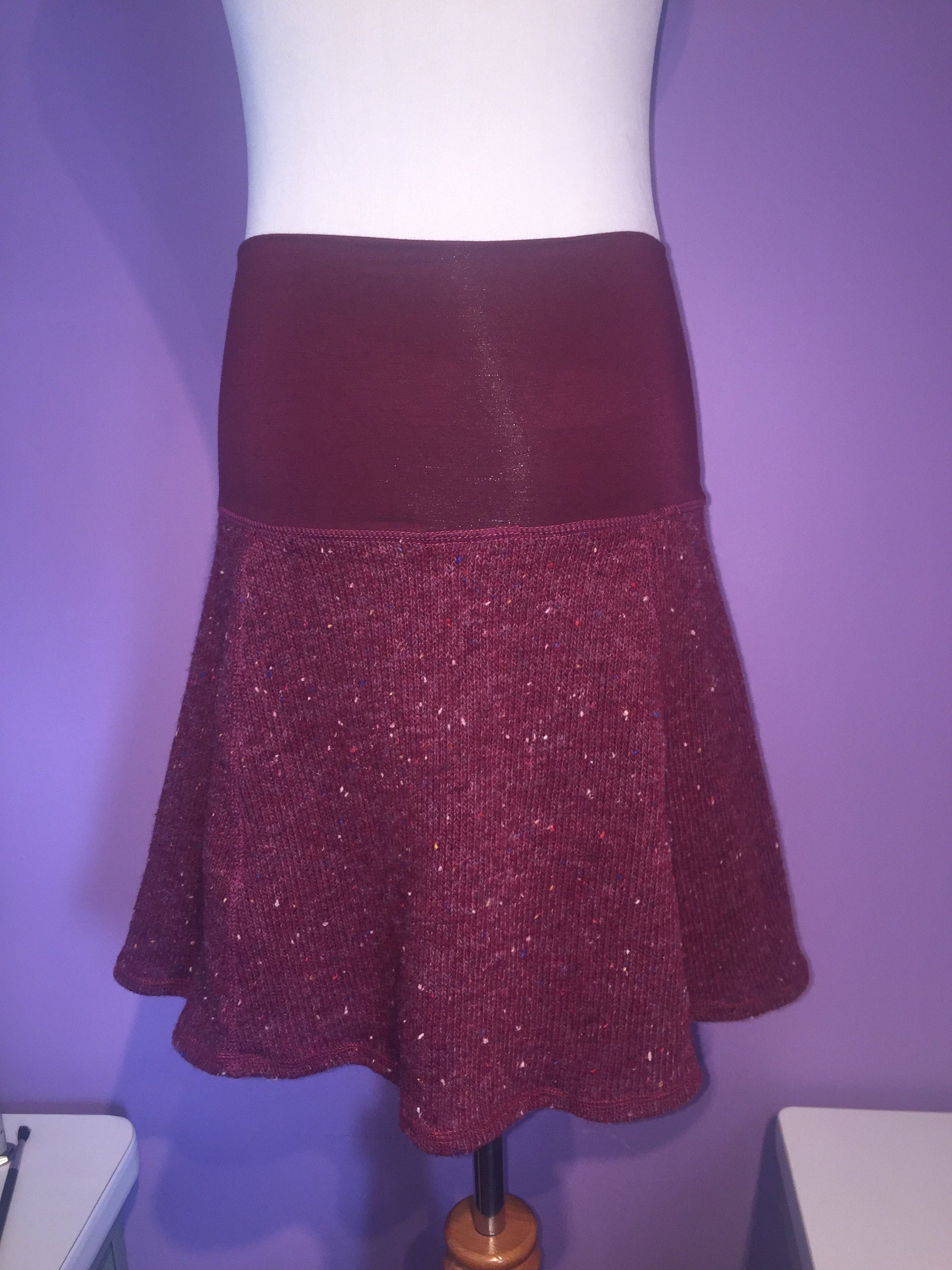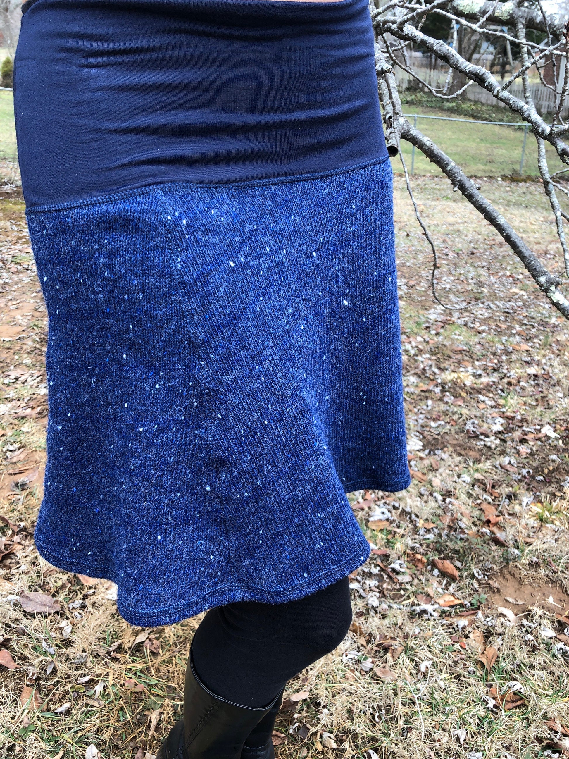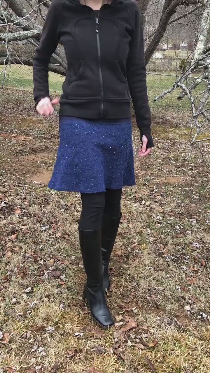 Was $69 - now $49. This skirt is a classic cut and style, designed to flatter any shape. Unique textured flecked wool that has stretch, lined with soft mesh, with a soft smooth modal waistband. Topstitching details.